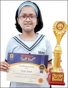 Lucknow, October 18 : Tashvi Singh, a talented Class VII student of City Montessori School, Aliganj Campus I, has brought glory to Lucknow with her outstanding performance in a national-level spelling competition. Tashvi secured the All India 15th rank at the National Mega Final Round of the prestigious Wiz National Spell Bee Competition, showcasing her exceptional talent. In recognition of her achievement, she was awarded a certificate, medal and trophy. CMS Manager, Prof. Geeta Gandhi Kingdon, expressed happiness over Tashvi’s success and wished her a bright future ahead. This information was given by Mr. Rishi Khanna, Head, Communications, CMS. Mr. Khanna further informed that this prestigious competition was organized by an educational institute, Wiz Spell Bee, and the selected students from various noted schools across the country participated in it. Despite the tough competition, this talented student of CMS Aliganj Campus I excelled in various parameters, including English knowledge, spelling, grammar, puzzles, phonetic symbols, speaking ability, rhyming words, jumbled letters, and more. She has proven that she is poised to enhance the nation’s pride on the international stage with her knowledge and multifaceted talent.Mr. Khanna further informed that CMS is making efforts to impart the highest quality of education in Hindi as well as English. Recognizing the needs of this scientific age, it is training the students to develop a scientific temper and global outlook. With these efforts, the school is forging ahead as the premier educational institution in the country, its students earning national and international honour.