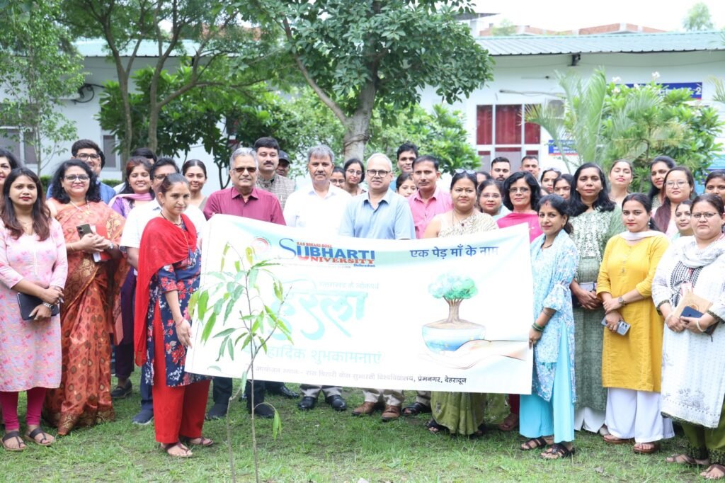 देहरादून संवाददाता। 16 जुलाई 2025 को रास बिहारी बोस सुभारती विश्वविद्यालय, देहरादून के संस्कृति विभाग द्वारा हरियाली के पर्व हरेला के पावन अवसर पर “एक पेड़ माँ के नाम” शीर्षक से एक विशेष कार्यक्रम का आयोजन किया गया। यह भावनात्मक एवं पर्यावरणीय चेतना से परिपूर्ण आयोजन प्रकृति के प्रति आभार व्यक्त करने और हरियाली को बढ़ावा देने के उद्देश्य से किया गया, जिसके अंतर्गत पौधे रोपित किए गए।