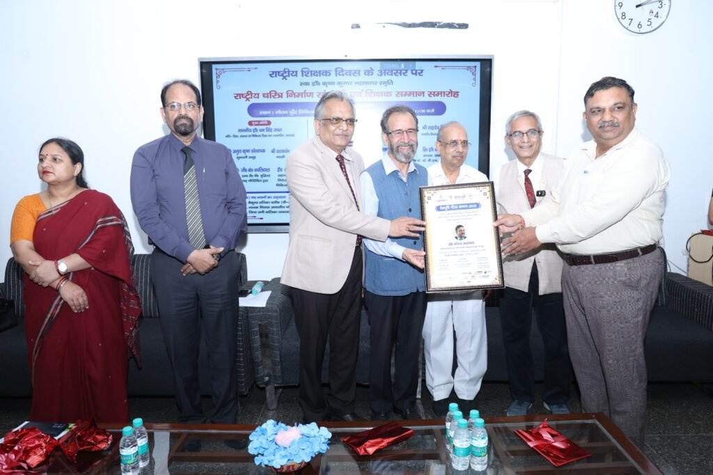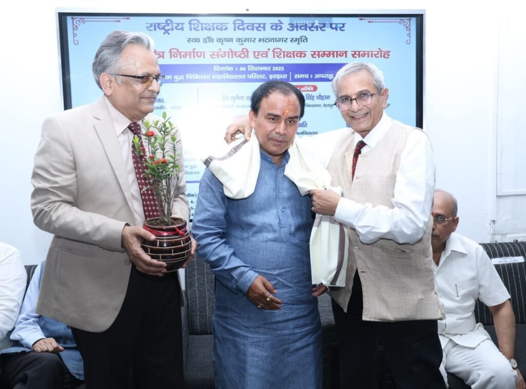 देहरादून। राष्ट्रीय शिक्षक दिवस एवं स्व. डॉ. कृष्ण कुमार भटनागर स्मृति में “राष्ट्रीय चरित्र निर्माण संगोष्ठी एवं शिक्षक सम्मान समारोह” का भव्य आयोजन गौतम बुद्ध चिकित्सा महाविद्यालय, झाझरा, देहरादून में हुआ।