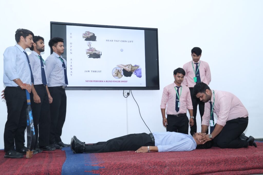डॉ. आस्था श्रीवास्तव, सहआचार्य, गौतम बुद्ध चिकित्सा महाविद्यालय नें लाइव सीपीआर डेमोंस्ट्रेशन द्वारा छाती दबाव, एयरवे मैनेजमेंट और रेस्क्यू ब्रीदिंग की व्यावहारिक विधियों का प्रदर्शन किया।