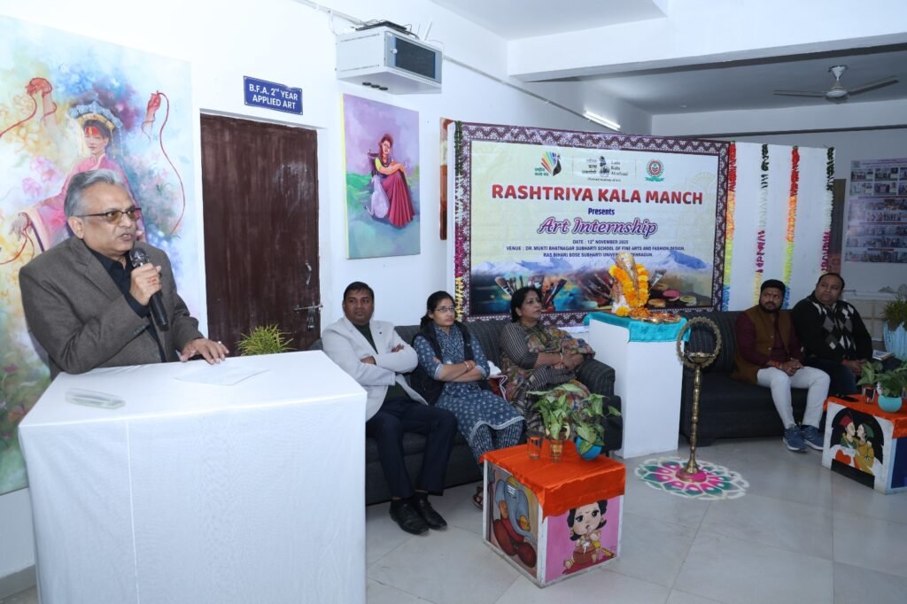 देहरादून, 12 नवम्बर 2025 — राष्ट्रीय कला मंच एवं ललित कला अकादमी, दिल्ली के संयुक्त तत्वावधान में डॉ. मुक्ति भटनागर सुभारती स्कूल ऑफ फाइन आर्ट्स एंड फैशन डिज़ाइन, रास बिहारी बोस सुभारती विश्वविद्यालय, देहरादून में आज कला और सृजनात्मकता के उत्सव “आर्ट्स इंटर्नशिप कार्यक्रम” का भव्य शुभारम्भ हुआ।