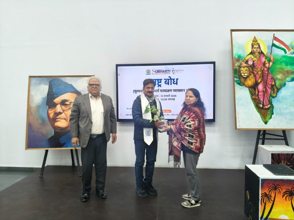 देहरादून। रास बिहारी बोस सुभारती विश्वविद्यालय, देहरादून में राष्ट्रीय युवा दिवस के अवसर पर आयोजित दो दिवसीय कार्यशाला का शुभारंभ प्रेरक और राष्ट्रप्रेरणा से ओत-प्रोत वातावरण में हुआ। कार्यक्रम के प्रथम दिन राष्ट्रीय युवा दिवस के अवसर पर देश के यशस्वी प्रधानमंत्री नरेंद्र मोदी के संबोधन की लाइव स्ट्रीमिंग विश्वविद्यालय परिसर में की गई, जिसे बड़ी संख्या में छात्र-छात्राओं, शिक्षकों एवं अधिकारियों ने एकाग्रता से सुना। प्रधानमंत्री के प्रेरक संदेशों ने युवाओं में आत्मनिर्भरता, राष्ट्र सेवा और लक्ष्यबद्ध जीवन के प्रति नई ऊर्जा का संचार किया और पूरे कार्यक्रम की वैचारिक दिशा तय की।
