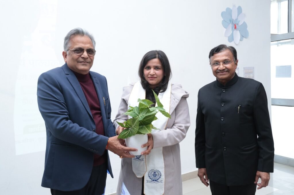 इसके बाद विश्वविद्यालय के कुलपति प्रोफेसर डॉ. हिमांशु ऐरन एवं संस्कृति विभागाध्यक्ष डॉ. राजेश तिवारी ने विशेष आमंत्रित वक्ताओं — डॉ. सुमेधा तिवारी प्रख्यात साइकियाट्रिस्ट और डॉ. सत्यांशु प्रख्यात फिल्म निर्देशक, बॉलीवुड — को स्मृति चिह्न एवं पौधा भेंट कर सम्मानित किया।
