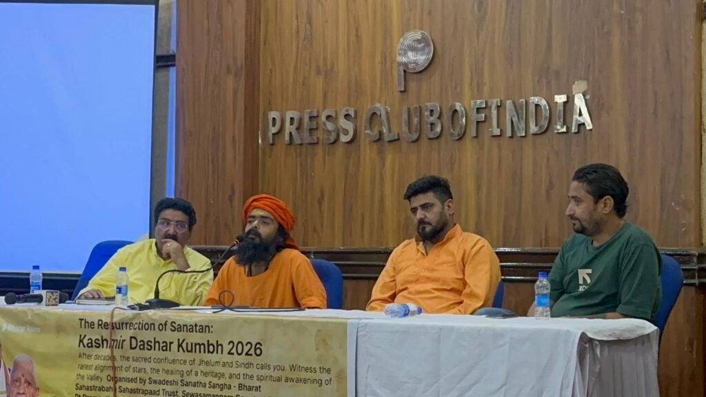 आज प्रेस क्लब नई दिल्ली में आयोजित एक महत्वपूर्ण प्रेस वार्ता में ‘कश्मीर दशार कुंभ 2026′ की भव्य घोषणा की गई। यह आयोजन स्वामी कालिकानंद सरस्वती जी महाराज (अध्यक्ष, आयोजन समिति एवं आनंद अखाड़ा) के पावन सानिध्य में और प्रख्यात ज्योतिषाचार्य पंडित ओंकारनाथ शास्त्री के विशेष मार्गदर्शन में संपन्न होने जा रहा है।