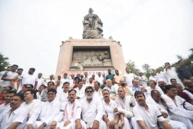 पटना, 12 जुलाई . कांग्रेस के पूर्व अध्यक्ष राहुल गांधी के समर्थन में बुधवार को बिहार कांग्रेस के नेता पटना के ऐतिहासिक गांधी मैदान स्थित महात्मा गांधी की प्रतिमा के समक्ष मौन होकर धरने पर बैठे.
